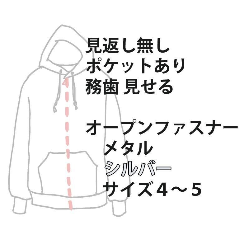 パーカーのジップアップリメイク(ポケットあり・見返し無し・務歯見せる・オープンファスナー:シルバー・サイズ4〜5)