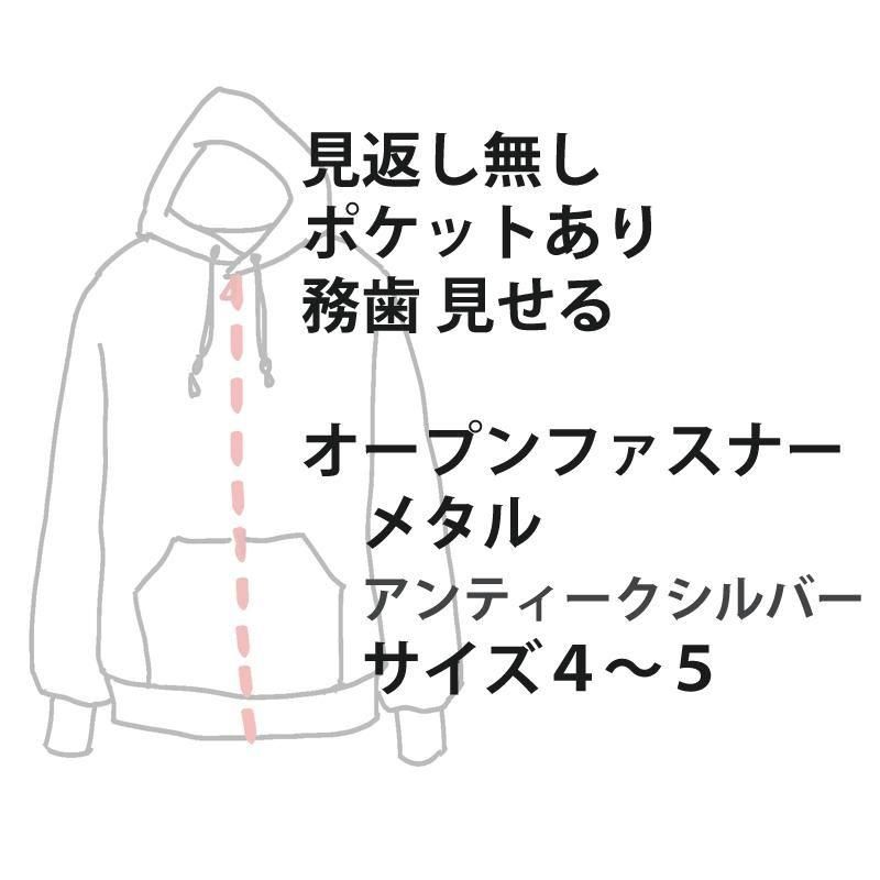 パーカーのジップアップリメイク(ポケットあり・見返し無し・務歯見せる・逆開ファスナー:シルバー・サイズ5)