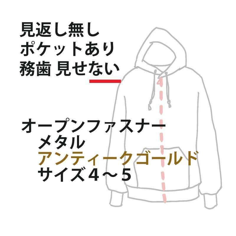パーカーのジップアップリメイク(ポケットあり・見返し無し・務歯見せない・オープンファスナー:アンティークゴールド・サイズ4〜5)