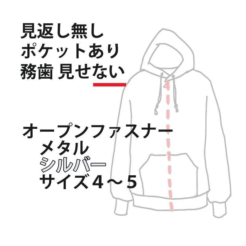 パーカーのジップアップリメイク(ポケットあり・見返し無し・務歯見せない・オープンファスナー:シルバー・サイズ4〜5)