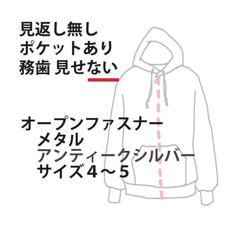 パーカーのジップアップリメイク(ポケットあり・見返し無し・務歯見せる・オープンファスナー:アンティークシルバー・サイズ4〜5)