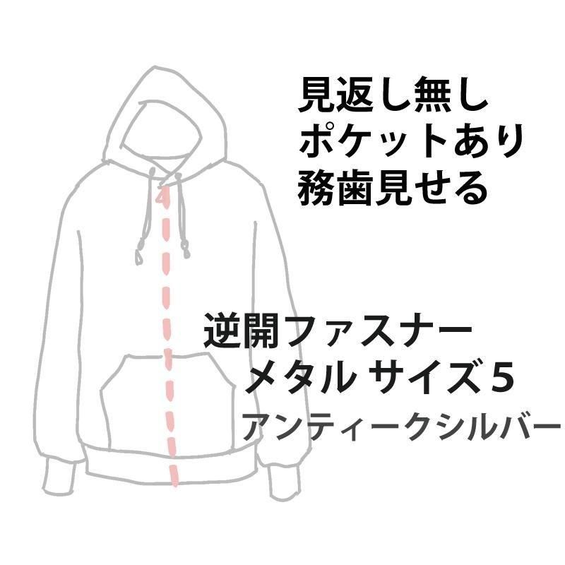 パーカーのジップアップリメイク(ポケットあり・見返し無し・務歯見せない・逆開ファスナー:アンティークゴールド・サイズ5)